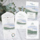 Evergreen forest, falling snow, and snow-covered Mt. Rainier is beautiful for a winter wedding in Mt. Rainier National Park, or at a venue with a mountain view. Pair with other outdoorsy pine needle wedding stationary in this collection. Watercolor Mt. Rainier and blue sky artwork is versatile for light green & dusty blue color themes.