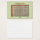 Ein orange und beige Multiplikationstisch auf einem chubby-Visitenkartenformat, damit Sie ihn einfach in Ihre Tasche, Brieftasche oder in Ihr Mathematik-Notebook oder -Bindemittel einfügen können. Diese Tabelle wird allen Lernenden helfen, ob sie Kinder oder Erwachsene sind, die an ihren mathematischen Fähigkeiten arbeiten. Dieses Design ist auf anderen Produkten wie Mousepads, Tasse, Buttons, Untersetzer, Fotokarten und mehr, sodass Sie wählen können, das am besten für Sie oder wählen Sie mehrere Formate, sodass Sie lernen können, wo immer Sie sind. Diese Karte ist in 100er-Päckchen erhältlich, was es Lehrern ermöglicht, ihren Schülern oder großen Familien zu geben, in denen viele gleichzeitig ihre Mathematik-Fähigkeiten erlernen oder beziehen. Oder Eltern, die Zuhause-Schulungen machen, könnten ein Paket für mehrere Eltern kaufen, um die Kosten zu teilen. © Angel Honey, 2011
