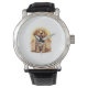 Uhr, Vintage Männeruhr mit schwarzem Lederarmband