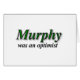 " Murphy war ein Optimist" ein humorvolles Nehmen auf dem berühmt pessimistischen Murphys Gesetz. Der berufliche Entwurf schaut gut und leitet den Leser irre, bis sie die Umbaulinie sehen, sie lustiger zu machen.