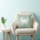 Eine weiße Krabbe auf einem hellgrünen Hintergrund für einen See- oder beachy Blick.