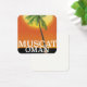 Muscat Oman Urlaubsposter einer großen untergehenden Sonne und einer Palme im mittleren Osten.