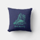 Doppelseitiges, ästhetisches Kissen mit wunderschöner Kontur der Muschel und leicht bearbeitbarer, individueller Text auf weißem Hintergrund auf einer Seite, und das gleiche Muster mit türkisfarbenem Hintergrund auf marinefarbenem Hintergrund auf dem LakeIsland.