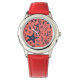 Kinderuhr aus Edelstahl mit rotem Lederarmband