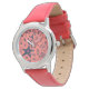 Uhr, Kinderuhr aus Edelstahl mit rosa Lederarmband