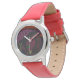 Uhr, Kinderuhr aus Edelstahl mit rosa Lederarmband