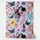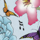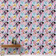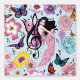 Eine niedliche Fee ganz in Rosa mit Musiknoten, Blume und Schmetterlingen in blauer Umgebung
