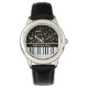 Musiknotizen und Klaviertasten Schwarz und Gold Armbanduhr