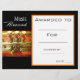 Ein stilvoller, moderner Musikzertifikat mit Trompetenbild, der perfekt geeignet ist, um einen jungen Musiker oder einen Messingspieler zu ermutigen. Sie können in Ihre eigenen Details schreiben. Eine großartige Ressource für eine Messingtrompete oder Musiklehrer.