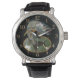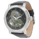 Uhr, Vintage Männeruhr mit schwarzem Lederarmband