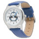 Kinderuhr aus Edelstahl mit blauem Lederarmband
