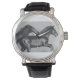 Uhr, Vintage Männeruhr mit schwarzem Lederarmband
