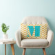 Mustard Yellow Ivory and Aqua Modern Monogram Zig Zag Pattern Throw Kissen