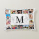 Erstellen Sie Ihr eigenes personalisiertes 14 Foto Collage Akzent Kissen mit Ihren individuellen Bildern und Monogramm auf einem eleganten, weißen Marmorhintergrund.