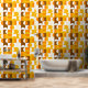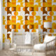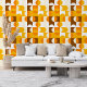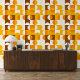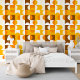 Dieses Design zeigt ein faszinierendes zeitgenössisches Muster geometrischer Kreise und Quadrate in dunkelgelb, hellorange, weiß und braun. Es vermittelt ein verziertes, elegantes und stilvolles Ambiente und eignet sich somit ideal für die anspruchsvolle künstlerische Mode, die trendige Mode-Diva, den beliebten angesagten Trendsetter, den Vintagen Retro-Kunstbegeisterten und Liebhaber abstrakter geometrischer Motive. Dieses Design finden Sie auf einer Vielzahl von attraktiven Wohngestaltungen.