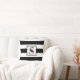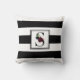 Mit diesem schwarz-weißen Rugby-Streifen-Muster können Sie Ihren Wohnraum schön personalisieren. Ein quadratischer Rahmen mit Doppelzeilenrahmen in der Mitte des Designs hat ein großes Monogramm mit dem Buchstaben "S". Das S ist mit einem Blumenstrauß in Bordeaux und Marineblau in Aquarellfarben verziert, um einen farbenfrohen Pop an der sonst monochromen Gestaltung zu erhalten. Dieses Design ist auch in anderen Buchstaben des Alphabets verfügbar.