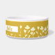 Liebliche Goldschale mit Blumenmuster. Ein einfaches Wiederholmuster von Blume mit Stielen, Blätter mit kleinen Blume. Es gibt einen kleinen Abschnitt, um dies zu personalisieren und einen benutzerdefinierten Text, z. B. einen Namen, hinzuzufügen.