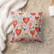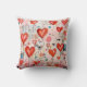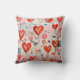 Ein Kissen mit einem lustigen Mixed Media Style Muster. Große rote Herzen und verschiedene zufällige Formen verstreut um ein wunderbar niedliches Muster zu machen.