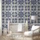 Muster der Vintagen blauen geometrischen Blume Tapete