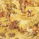 Dieses Bild stammt aus einem antiken Druck von 1900 bis 1920 auf Papier mit Landszenen, darunter das Pflügen der Felder, Heurettchen, Frauen, die Kuh melken und Pferde in Weiden