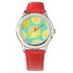 Kinderuhr aus Edelstahl mit rotem Lederarmband