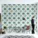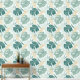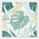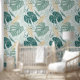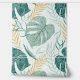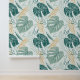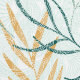 Tropische Blätter in Grün und Gelb mit weißem Paisley-Muster-Overlay.