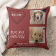 Honor a beloved pet with this heartfelt two‑sided memorial design. The front features a muted red background with two cherished photos stacked on the right, paired with a paw‑print heart outline holding your pet’s name in elegant white Playfair Display. “Miss you baby girl” appears in soft Dancing Script beside the lower photo, while “taken too soon by hemangiosarcoma” rests along the bottom in bold white text with a gentle pink halo for added depth.