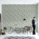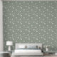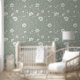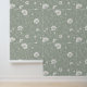 A beautiful hand-drawn floral pattern featuring delicate white wildflowers on a muted sage green background.