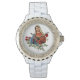Eine wunderbare Damenuhr mit weißem Armband und grün-weiß-kariertem Ziffernblatt. Trägt sich ganz fabelhaft. Exzellenter Druck, sehr klare Farben. Schönes Design.