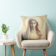 Eine ruhige Darstellung einer Frau in einem Mantel ist von einem strahlenden Halo umgeben, der ein Gefühl von Frieden und Göttlichkeit ausstrahlt. Die weiche Farbpalette verbessert die ätherische und spirituelle Qualität der Szene.