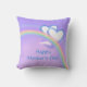 Kopfkissen mit zwei weißen und blauen Herzen über einem Regenbogen in einem lila Himmel. Im Text steht "Muttertag glücklich sein".