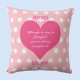 Dieses Kissen ist ein tolles Geschenk für Ihre Tochter, die zur Uni weg ist oder einfach nur in eine neue Stadt gezogen ist. Das Kissen ist hellrosa mit weißen Polka-Punkten auf der Vorder- und Rückseite. An der Vorderseite steht ein dunkelrosa Herz, das lautet: "Obwohl wir weit auseinander liegen mögen, bist du immer im Herzen!" Sie können den Namen Ihrer Tochter ganz oben anpassen und die Liebe unterhalb des Herzens anpassen. Copyright Kathy Henis
