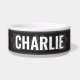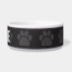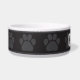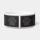 Personalized custom pet feeding dish featuring a modern pawprint theme in black and gray, that you can fully change to other preferable colors. Personalize with your pets name or custom message to match the aesthetic of your pet. This bowl pairs perfectly with the Pet SAFETY ALERT Modern Pawprint Border collection, where you will find other great products in this same style aesthetic. This is a must have for any pet owner.
