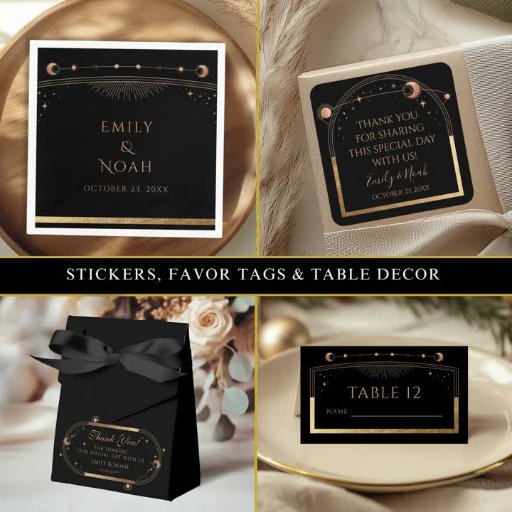 Celestial Black Gold Sun Moon Stars WeddingDesignt von Shirley Evans