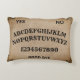 Dieses Kopfkissen zeichnet sich durch ein mystisches Spirituosendesign aus. Der Hintergrund ist ein rustikales Aussehen, altes Holz oder Pergamentpapier Muster. Ein Vintager, gotischer Rahmen grenzt an das Kissen. Das Alphabet und die Zahlen werden in der Mitte gedruckt, mit einfachen "Ja" und "Nein" Antworten, die oben gedruckt werden. Eine "Auf Wiedersehen"-Nachricht ist unten.