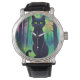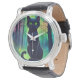 Uhr, Vintage Männeruhr mit schwarzem Lederarmband
