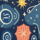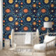 Mit diesem zauberhaften Himmelsmuster, das sich aus feinen Sonnen, Monden und Sternen auf einem tiefen Marinehintergrund zusammensetzt, verwandeln Sie Ihren Raum. Dieses magische Design ist perfekt für die böhmische und mystische Wohngestaltung geeignet und vereint skurrile Himmelselemente mit volkstümlichen Einflüssen. Die warmen Korallen, goldgelben und minzigen Akzente schaffen eine traumhafte kosmische Atmosphäre, ideal für Bettwäsche, Tapisserien oder spirituelle Räume. Jedes Element ist sorgfältig detailliert mit Spiralen, Punkten und fließenden Linien, die das Geheimnis des Nachthimmels erfassen.