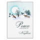 Wünschen Sie ein friedliches Weihnachtsfest für Ihren Nachbarn. Eine schneebedeckte Mondlandschaft. Eine Rentierfamilie geht auf einem schneebedeckten Berg spazieren. Im Hintergrund leuchtet der Vollmond auf den Winterbäumen.
