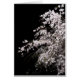 Zweige eines beleuchteten weinenden Kirschbaums in voller Blüte gegen einen stockschwarzen Nachthimmel