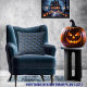 Dieser digitalisierte, grafische zeichn zeigt einen geistreichen, gnarmigen Baum mit kratenförmigen Gliedmaßen, ausgestreckt hin, einem schattigen, bronzefarbenen, mondförmigen Ravenvögel, der zwischen den Zweigen, mit gotischem Gruß, gegen einen blauen und nachtblauen Himmel aufragt.