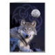 Eine Nachtszene eines Wolfs. Im Hintergrund ist ein Vollmond und ein keltischer Knoten.