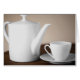 eine Tasse nah und eine Untertasse mit Teekessel. Copyright: Glowimages