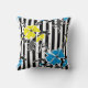 Nahtlose bläulich-gelbe Blumen graue Blätter gestreift Schwarz-weiße Muster