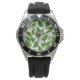 Nahtloses Muster mit Blätter aus grünem Tee Armbanduhr