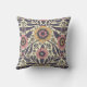 Dieses Kopfkissen mit Blume und Blätter in Rosa- und Blautönen auf cremefarbenem Hintergrund.