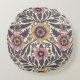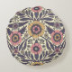 Dieses runde Kissen mit Blume und Blätter in Rosa- und Blautönen auf cremefarbenem Hintergrund.