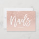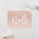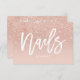 Eine elegante, moderne, stilvolle Nails Kunsthandwerkskarte Visitenkarte mit eleganter Schrift Handschrift Stil Typografie in Weiß auf einem Imitat Rose Gold Glitzer und Pastellrot rosa Trend und eleganten Hintergrund. Wenn Sie eine Anpassung benötigen, zögern Sie nicht, mich zu kontaktieren