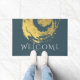 Namaste Yoga Studio Meditation Instructor Personalisiert Welcome Doormat Template - Elegant Blue und Imitate Gold Foil Pinselstriche ZEN Symbol.