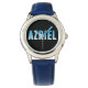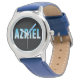 Kinderuhr aus Edelstahl mit blauem Lederarmband