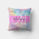 Girly Regenbogen holografische irisierende Monogramm Name und erste Wurfkissen. Ihr eigener Name und Ihr Monogramm werden in einem eleganten, handgeschriebenen Skript mit rosa Hintergrund geschrieben. Ein perfektes Geburtstag- oder Weihnachtsgeschenk!
